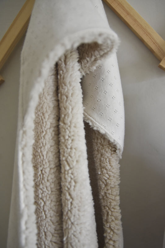 Wikkeldeken "Pointelle mini beige + Teddy Beige"