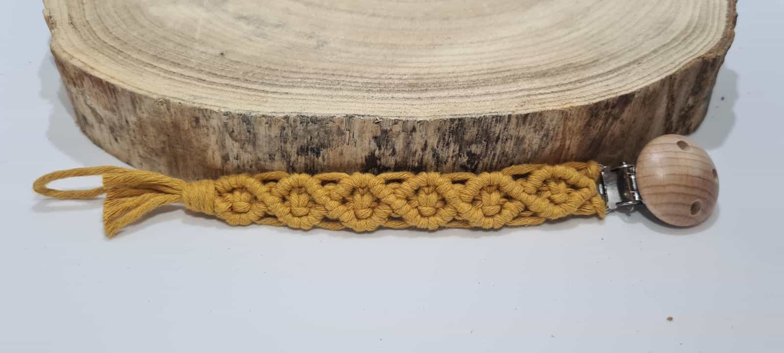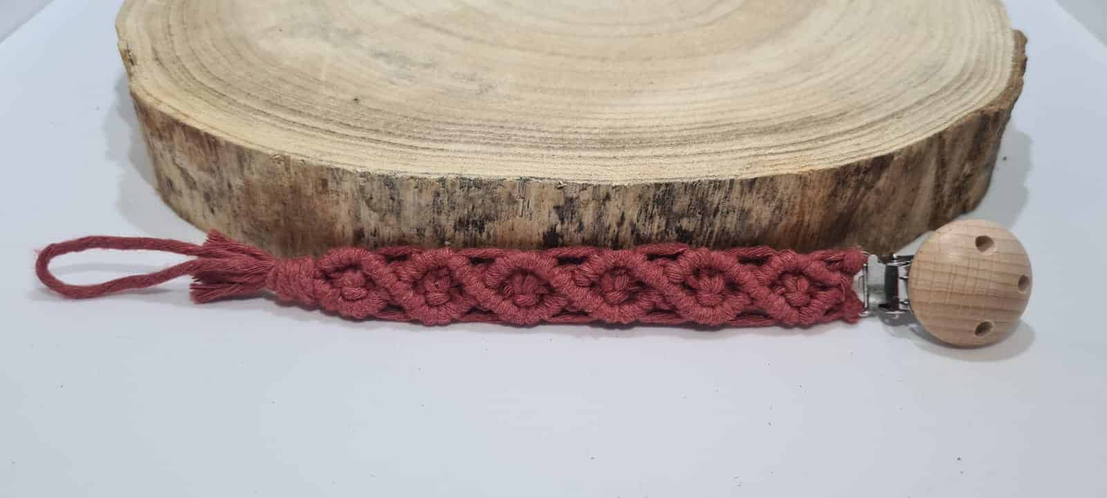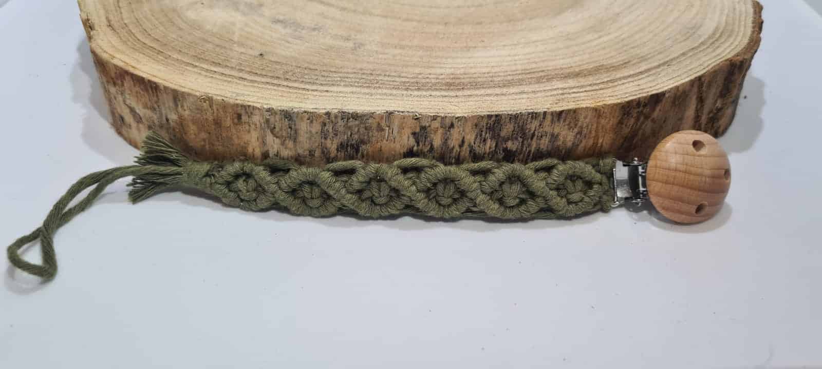 Hoe gaaf is een handgemaakt macramé speenkoord?! De houten clip sluiting zorgt ervoor dat je niet meer hoeft te zoeken naar de speen van je kindje. Het speentje is nu altijd dichtbij je baby, wel zo handig. Macramé is een handwerktechniek die bestaat uit het knopen van draden. De manier van knopen zorgt voor verschillende patronen. Dit zorgt voor een mooie bohemian uitstraling. Het speenkoord heeft een lus om de speen aan te bevestigen en een houten klip om het speenkoord te bevestigen aan bijvoorbeeld de kleding van je kindje, deken of een doekje/knuffeltje. Ook leuk om als (kraam)cadeau te geven!